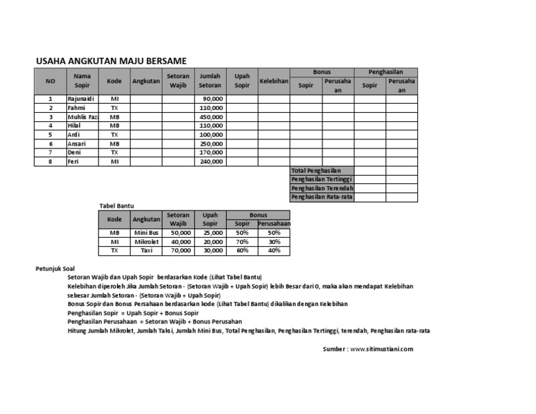 Soal praktek excel dan jawabannya. Soal latihan praktik ini dibuat sedemikian rupa dengan tingkatan soal yang bervariasi sesuai dengan materi pengolahan data menggunakan aplikasi microosft excel. Dari tabel diatas kalian diminta untuk menyelesaikan daftar gaji karyawan menggunakan software microsoft excel. Soal latihan siklus akuntansi sma Sertifikasi profesi akuntansi latihan praktek akuntansi :